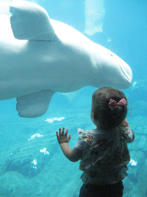 When we were looking at the walrus, a HUGE one came right up to the glass, all ugly with his big whiskery mouth and long tusks and bald head, eating a fish and spitting it out, smashing it all against the glass–it was GROSS!! So gross. Scared Annie to death because it was like right in our face!! Crazy. So Annie kept saying, “Ewww. Gross.” I’m sorry, but the walrus is not a good looking creature. Hopefully nobody ever tells you that you remind them of a walrus, it is NOT a compliment. 🙂 This picture does not do it justice.