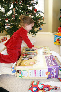 Lucky for us, both kids slept in Christmas morning! The first thing Brandon did was to check and see if the cookies and chocolate milk were gone….and they were!! 🙂 Santa must’ve come! Opening presents was so much fun. Brandon did a good job distributing all of the gifts by reading the names on the tags. He told me that his favorite things were “opening presents and making Santa’s treats!” I couldn’t even get anyone to look at the camera, they were so busy ripping off the paper. 🙂