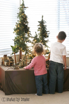 Here’s Brandon and Annie playing with my Bethlehem village, before I get it all set up with lights.