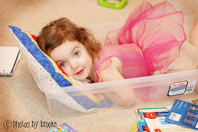 She loves to put on dress-ups and be a “pin-theth” aka princess. She also has loved playing in this long rubbermaid container lately. Seriously, who needs actual toys when you have boxes. Here she’s just having a leisurely read of one of her novels.