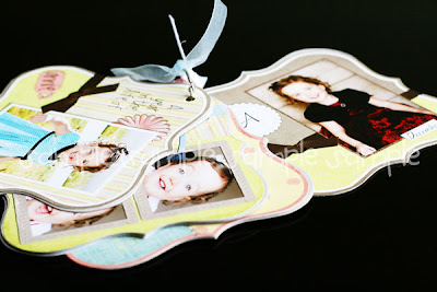 It fits on the chipboard bracket album by Basic Grey and I got mine at Roberts. I printed my pages at Costco on a 12×18 sheet (6 little layouts fit per sheet), cut them out and used double-sided tape to adhere. I might use Mod Podge to seal it from dirty little fingers. 🙂 Here are a few more sample pictures just to show you.