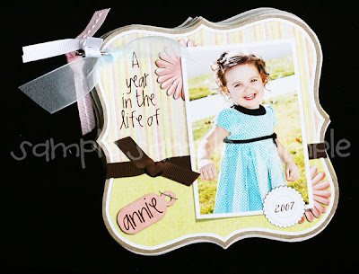 I wanted to share a fun little project I did just before I had Haylie (actually the day before I had her!). I created a “bracket album” with pictures of Annie from each month of 2007. Kind of a simple “year at a glance” little mini book, no journaling. I’m planning on making one for Brandon eventually (and Haylie too). I love how it turned out.