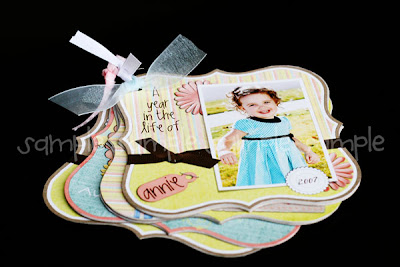I wanted to share a fun little project I did just before I had Haylie (actually the day before I had her!). I created a “bracket album” with pictures of Annie from each month of 2007. Kind of a simple “year at a glance” little mini book, no journaling. I’m planning on making one for Brandon eventually (and Haylie too). I love how it turned out.