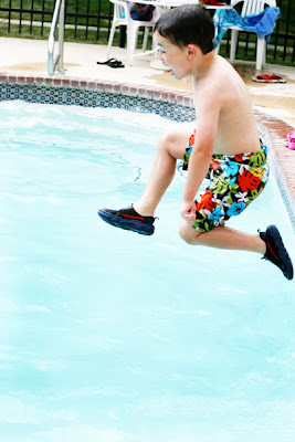I’ve been trying to get a good shot of how water-logged Brandon’s long luscious eyelashes get!! They clump into 4 huge sections and droop over his eyes and makes it hard for him to see. What I would give to have that problem.