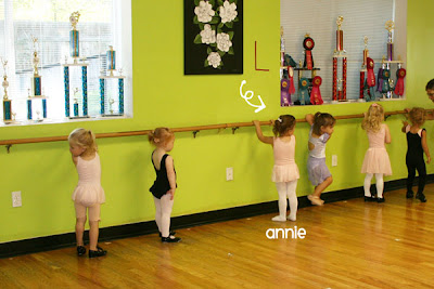 Cute Annie. I still have to get all the ballet jazz stuff. “G’s” class only had 3 girls in it, so she had tons of one-on-one time. It looks super cute with all the girls lined up though.