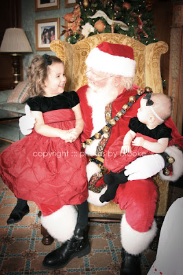 These next ones are my favorite. Santa and the girls. Finally, a true Annie smile. Brandon was already off talking with the photographer and watching our pictures print out. 🙂